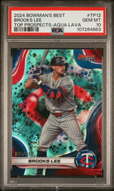 Graded 2024 Topps Bowmans Best Brooks Lee #TP12 Top Prospects Aqua Lava /199 Rookie RC Baseball Card PSA 10 Gem Mint