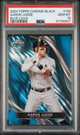 Graded 2024 Topps Chrome Black Aaron Judge #100 Blue Lava #/75 Baseball Card PSA 10 Gem Mint