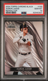 Graded 2024 Topps Chrome Black Aaron Judge #100 Refractor #/199 Baseball Card PSA 10 Gem Mint