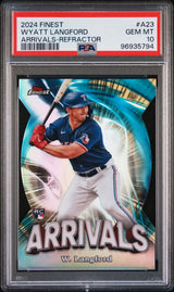 Graded 2024 Topps Finest Wyatt Langford #A23 Arrivals Refractor Rookie RC Baseball Card PSA 10 Gem Mint