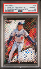 Graded 2024 Topps Finest Yoshinobu Yamamoto #50 Checkerboard Refractor Rookie RC Baseball Card PSA 10 Gem Mint