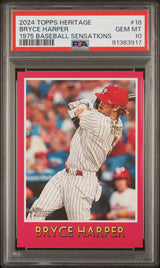 Graded 2024 Topps Heritage Bryce Harper #18 1975 Baseball Sensations Baseball Card PSA 10 Gem Mint