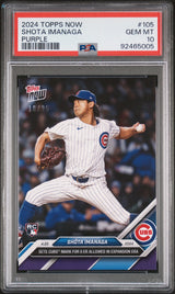 Graded 2024 Topps Now Shota Imanaga #105 Purple #/25 Rookie RC Baseball Card PSA 10 Gem Mint