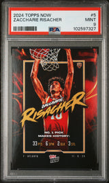 Graded 2024 Topps Now Zaccharie Risacher #5 Rookie RC Basketball Card PSA 9 Near Mint