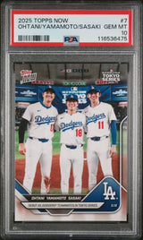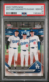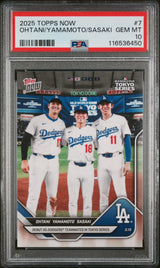 Graded 2025 Topps Now Shohei Ohtani/Yoshinobu Yamamoto/Roki Sasaki #7 Baseball Card PSA 10 Gem Mint