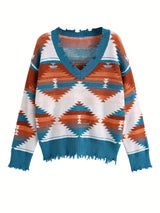 Heidi Frayed Hem V-Neck Long Sleeve Sweater