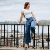 Elevate your style with our Hi-low waist cropped palazzo. The raw edge piping and high low waist add a chic twist to this versatile piece. With our adjustable waist technology, exclusive from Cenia Convi Jean, you'll experience both comfort and a flattering fit. Upgrade your wardrobe with this must-have fashion statement.