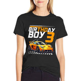 Kids Birthday Boy 3 Years Race Car 3rd Birthday Racing Car Fade-proof Color T-Shirt