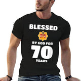 Mom Grandma Blessed by God for 70 Years 70th Birthday Ribbed Collar T-Shirt