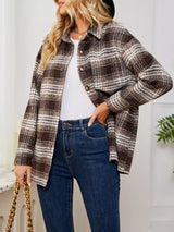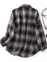 This plaid shacket comes with button closures and handy pockets. It’s made from 100% polyester with a regular thickness and an unlined body. For easy care, just machine wash it cold and tumble dry low. Perfect for adding a cozy, fun layer to your outfit!