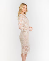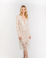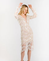 Enhanced by the iconic style of the 1920s, this dress exudes a sense of playfulness while still remaining feminine and flattering, making it an optimal choice for any cocktail party or special event.