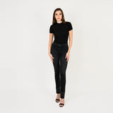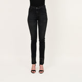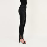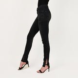 Made from our premium stone washed black denim, this skinny convi with sexy slits at the side of legs takes an rockish twist when combined with the antique silver spike studs placed the bottom of the leg opening.