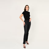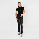 Antique silver spike studs added to the front pockets make this black stone washed Bootcut a must have!