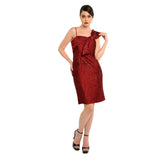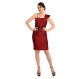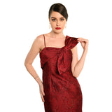 The Corday dress is the embodiment of modern power and poise. It's designed for the bold, feminine, and contemporary woman: showcasing thin spaghetti straps, an asymmetric bow on the left shoulder, and a dark red hue of Luxered Brocade Fabric. It's perfect for those who seek to unify femininity and fierceness. This dress is an avant-garde fashion piece that goes beyond anything you've seen before.