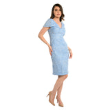 Crafted with an eye for detail, The Margaret is a stunning blue dress that features a plunging neckline and customized short sleeves for a modest yet sophisticated appearance. Its high-quality Novelty Burnout Jacquard fabric gives it a luxury feel that works for both dinning and special occasions. The Margaret will give you an elegant look for any event.