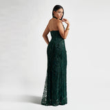 Indulge in luxury with our Halter Scalloped Neckline Gown. Made from an exquisite beaded mesh fabric, the scalloped border and mesh insert at the center front neckline add a touch of elegance. With a built-in bustier, this gown will define your curves for a flawless look.