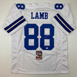 Autographed/Signed CeeDee Lamb Dallas White Football Jersey JSA COA