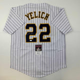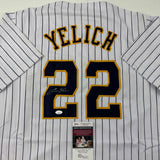 Autographed/Signed Christian Yelich Milwaukee Pinstripe Baseball Jersey JSA COA