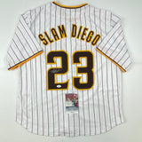 Autographed/Signed Fernando Tatis Jr. Slam Diego San Pinstripe Baseball Jersey JSA COA