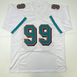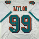 Autographed/Signed Jason Taylor Miami White Football Jersey Beckett BAS COA