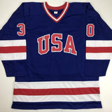 Autographed/Signed Jim Craig Blue Team USA Miracle On Ice 1980 Olympics Hockey Jersey JSA COA