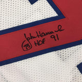 Autographed/Signed John Hannah HOF 91 New England White Football Jersey JSA COA