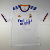 Autographed/Signed Karim Benzema Real Madrid 2021-22 White Soccer Jersey Beckett BAS COA