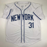 Autographed/Signed Mike Piazza New York NY White Baseball Jersey Beckett BAS COA