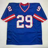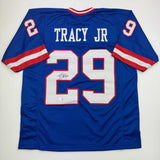 Autographed/Signed Tyrone Tracy Jr. New York Blue Football Jersey Beckett BAS COA #2