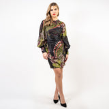 Made from a gorgeous paisley printed silk, this chic and tastefully sexy sheath dress drapes the body in the most sumptuous manner.-Length from HPS: 38”-Long sleeves